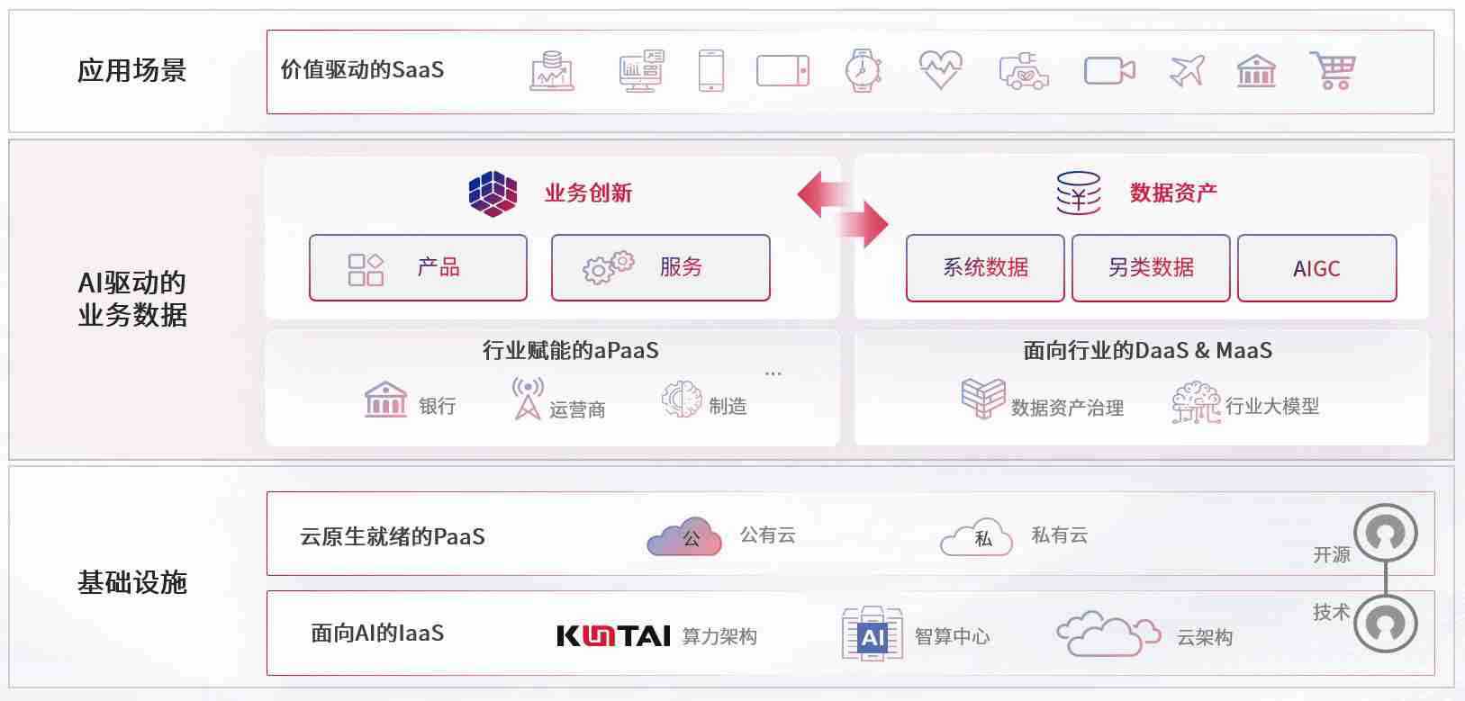 数字时代,,围绕企业数字化转型的关键要素,,hahabet数码开创性的提出数云融合战略和技术体系框架,,,着力在云原生、、、数字原生、、AI原生和信创产业上架构产品和服务能力,,,,为处在不同数字化转型阶段的快消零售、、、汽车、、、、金融、、医疗、、、、政企、、教育、、、运营商等行业客户提供泛在的敏捷IT能力和融合的数据驱动能力,,,构建跨界融合创新的数字业务场景和新业务模式,,,,助力企业级客户建立面向未来的核心能力和竞争优势,,,全面推动社会的数字化、、、智能化转型升级。。